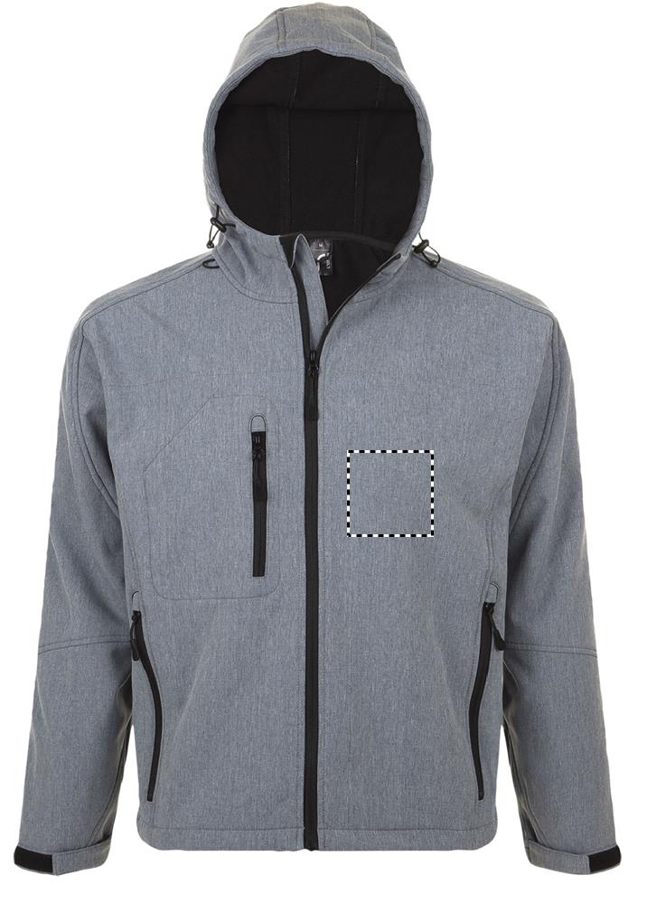 SOL'S REPLAY men softshell jacket 340g. Карманы на молнии по бокам и на груди, стягивающий шнур на талии, регулируемые с помощью липучек манжеты капюшон со стягивающим шнуром. Fabric details: 94% полиэстер - 6% эластан. Флисовая подкладка: 100% полиэстер. 3 слоя. Водонепроницаемое покрытие: 8000 мм дышащее. OEKO-TEX. Only Sold with Print.