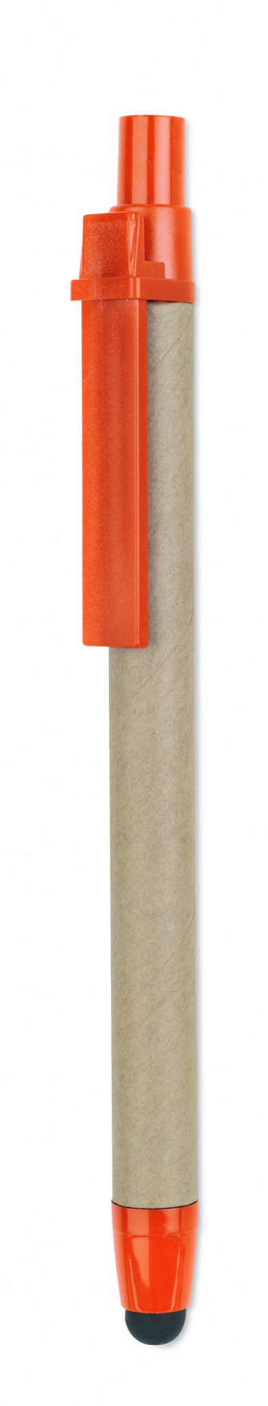 Шариковая ручка стилус автомат , изготовленная из переработанного картона и кончика и клипсы из ABS . Синие чернила.