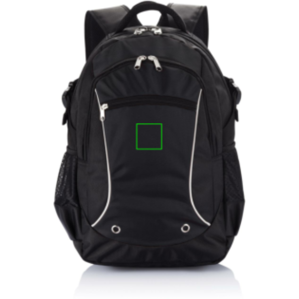 1680D и жаккардовый рюкзак. Передний карман на молнии с органайзером. Основное отделение на молнии с мягким карманом для ноутбука 15,6". Светоотражающая окантовка. Два боковых сетчатых кармана. Не содержит ПВХ.