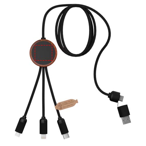 SCX.design C37 Зарядный кабель 5 в 1 из переработанного PET-пластика со светящимся логотипом и скругленным деревянным корпусо