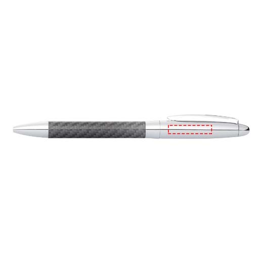 Классическая шариковая ручка с блестящей верхней частью и отделкой из углеродного волокна в нижней части. Включает цилиндрическую подарочную коробку.