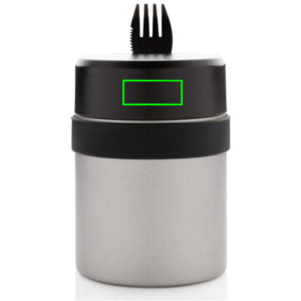 Känn inte smaken av stainless steel utan endast av maten eller soppan! En keramisk all over-coating har applicerats på insidan för att eliminera eventuell metallsmak. Håll innehållet varmt i upp till 5tim och kallt i upp till 15tim med denna vakuumisolerade mattermos. En allt-i-ett gaffel, kniv, sked medföljer. Läckagesäkert lock. Volym: 400ml. Registrerad design®