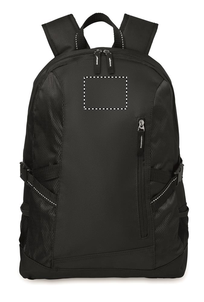 15-tums ryggsäck i 600D med rip-stoppdetaljer. Innehåller ett fack för 15 tums dator, en främre ficka med dragkedja och 2 sidofack. Justerbara axelremmar.