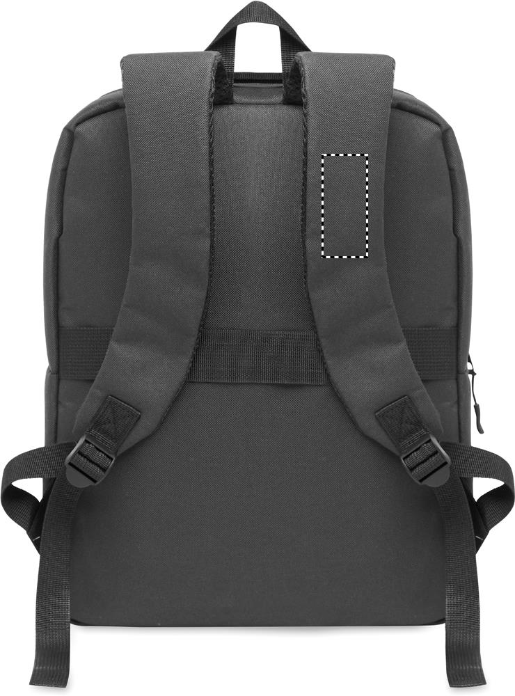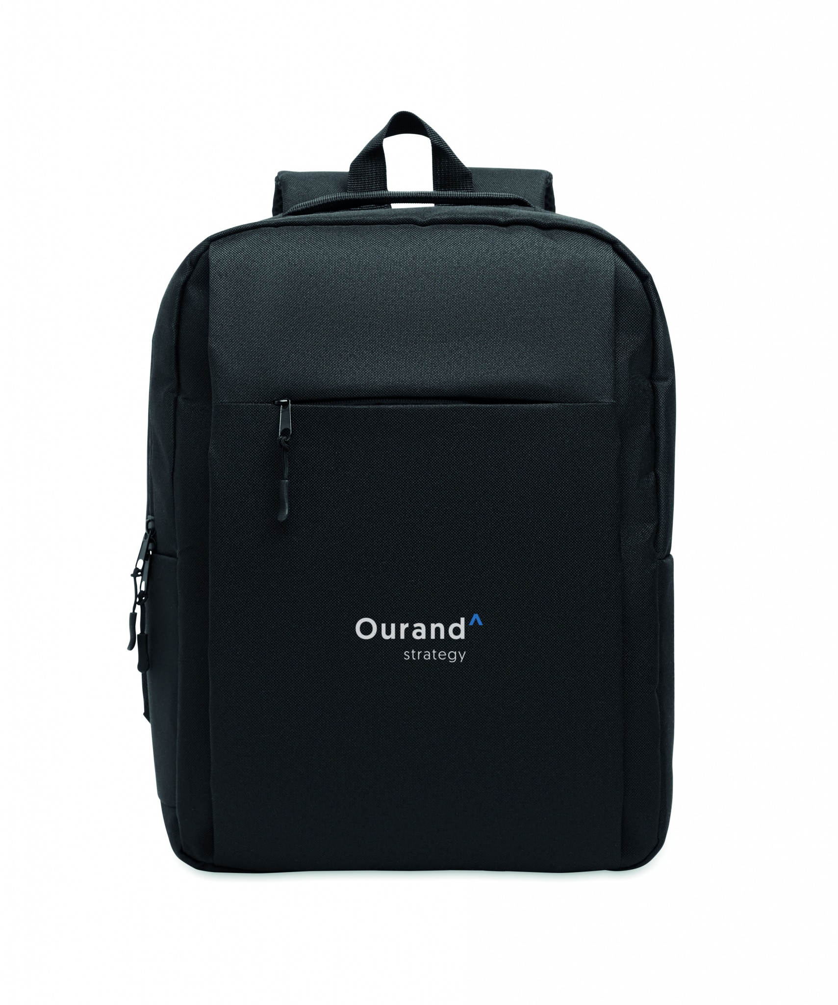Logotrade kampanjprodukter bild: En 15''  ryggsäck tillverkad av 600D RPET-polyester med 210D-foder och anpassningsbar tryckning