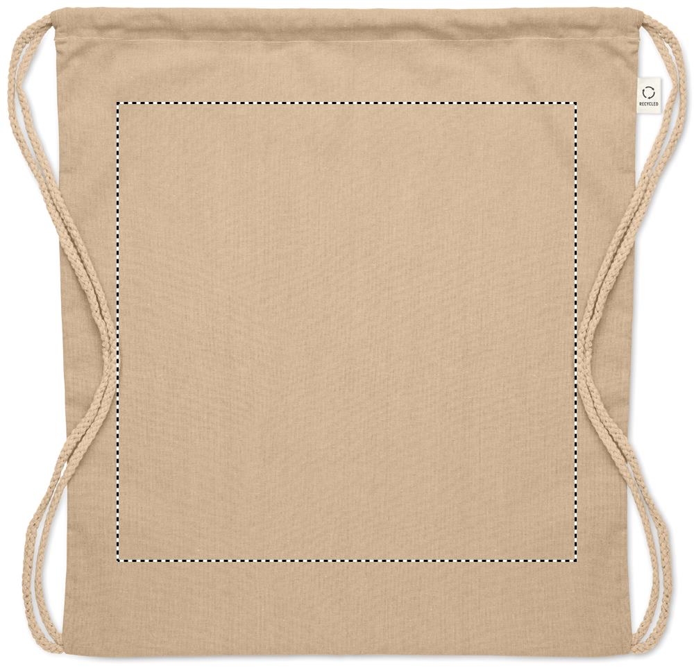 Gymnastikpåse i bomull av återvunna textilier (70 %) och RPET (30 %). 140 gr/m².