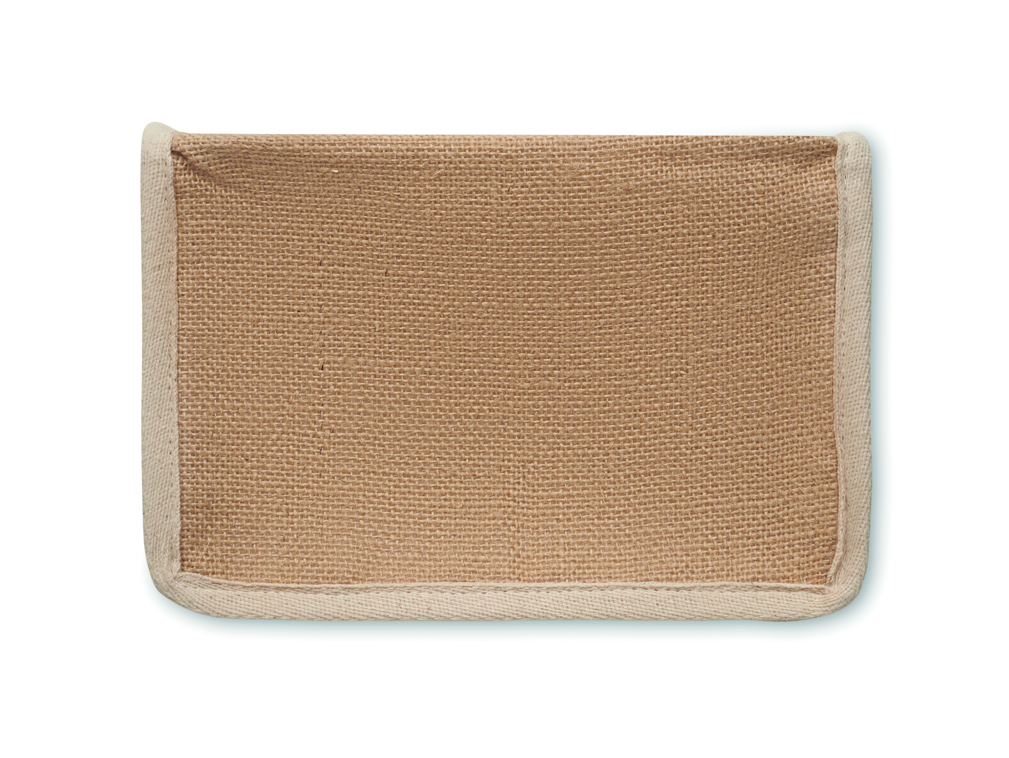Kylväska för 6x0,5L-flaskor i jute med bomullsrem och frontficka. Isoleringsmaterial: 3 mm aluminiumfolie. Volym 3L.