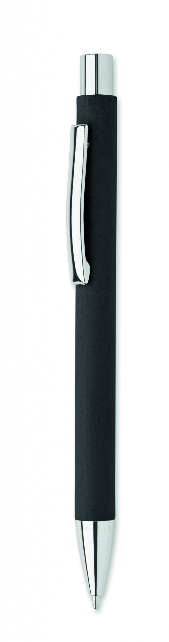 Kulspetspenna med tryckknapp i återvunnet papper och metall spets och klips. Blått bläck.