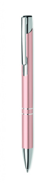 Kulspetspenna med tryckknapp i återvunnen aluminium. Blått bläck.
