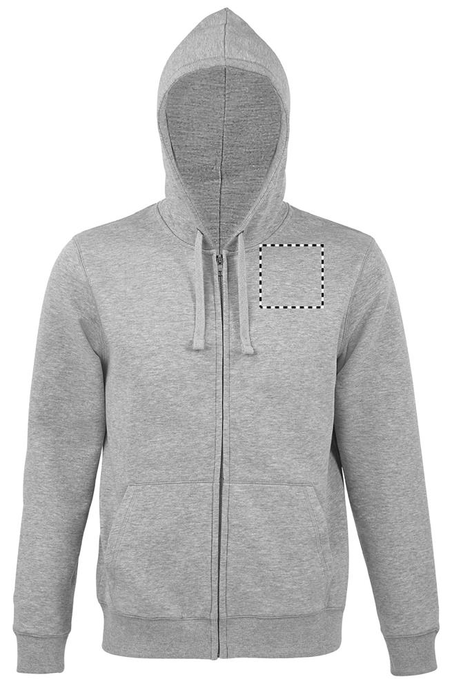 SOL'S SPIKE HERR, HUVTRÖJA MED DRAGKEDJA FÖR HERRAR, 80 % ringspunnen bomull - 20 % polyester, Borstat foder, Utsida: 100 % bomull FLEECE 280 LSF (tyg med låg krympningsgrad) , Släta ärmar, 2 påsydda fickor fram, Skuren och sydd, Fodrad huva med dragsko ton i ton, 2x2 ribbade ärmslut och nederkant, Halvmåneformad innerkrage, Tejpad halsringning, YKK-dragkedja för matchande storlekar, se storlekstabellen i avsnittet om produktdokumentation.