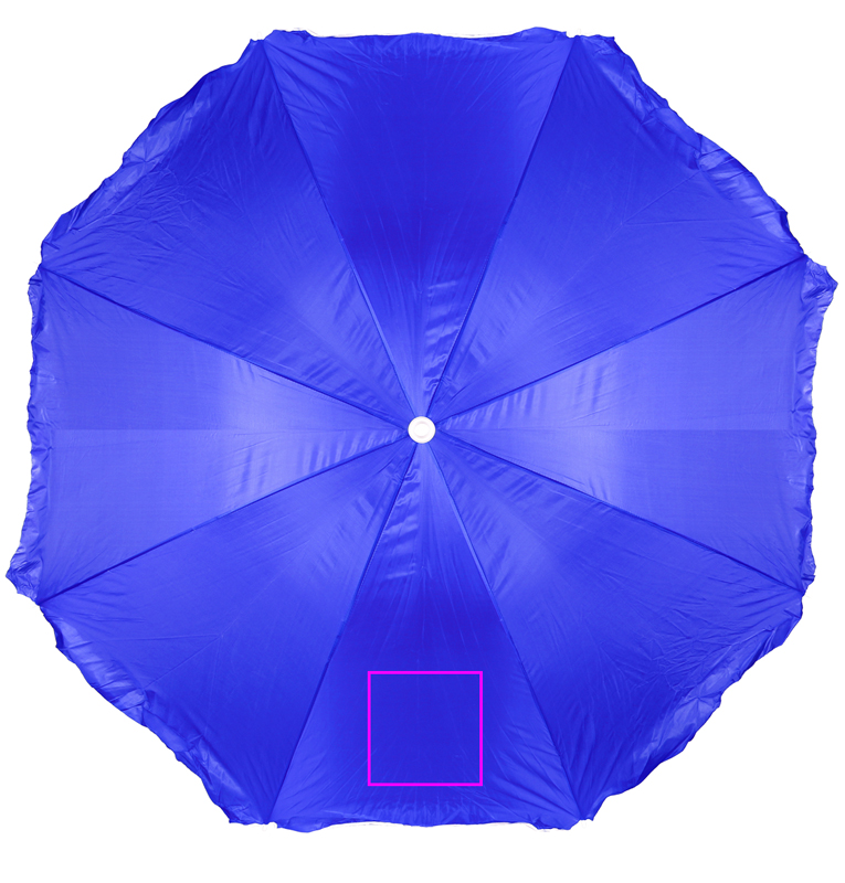 Solsken är fantastiskt - men du måste skydda dig från det. Skugga dig själv med vårt högkvalitativa strandparasoll. Den vitlackerade metallstången är separat och mycket justerbar, materialet är tillverkat av polyester och de inre ekrarna är gjorda av vitlackad metall som matchar bården. Parasollet är förpackat i en genomskinlig bärväska. Vi sätter din logotyp på en av panelerna.